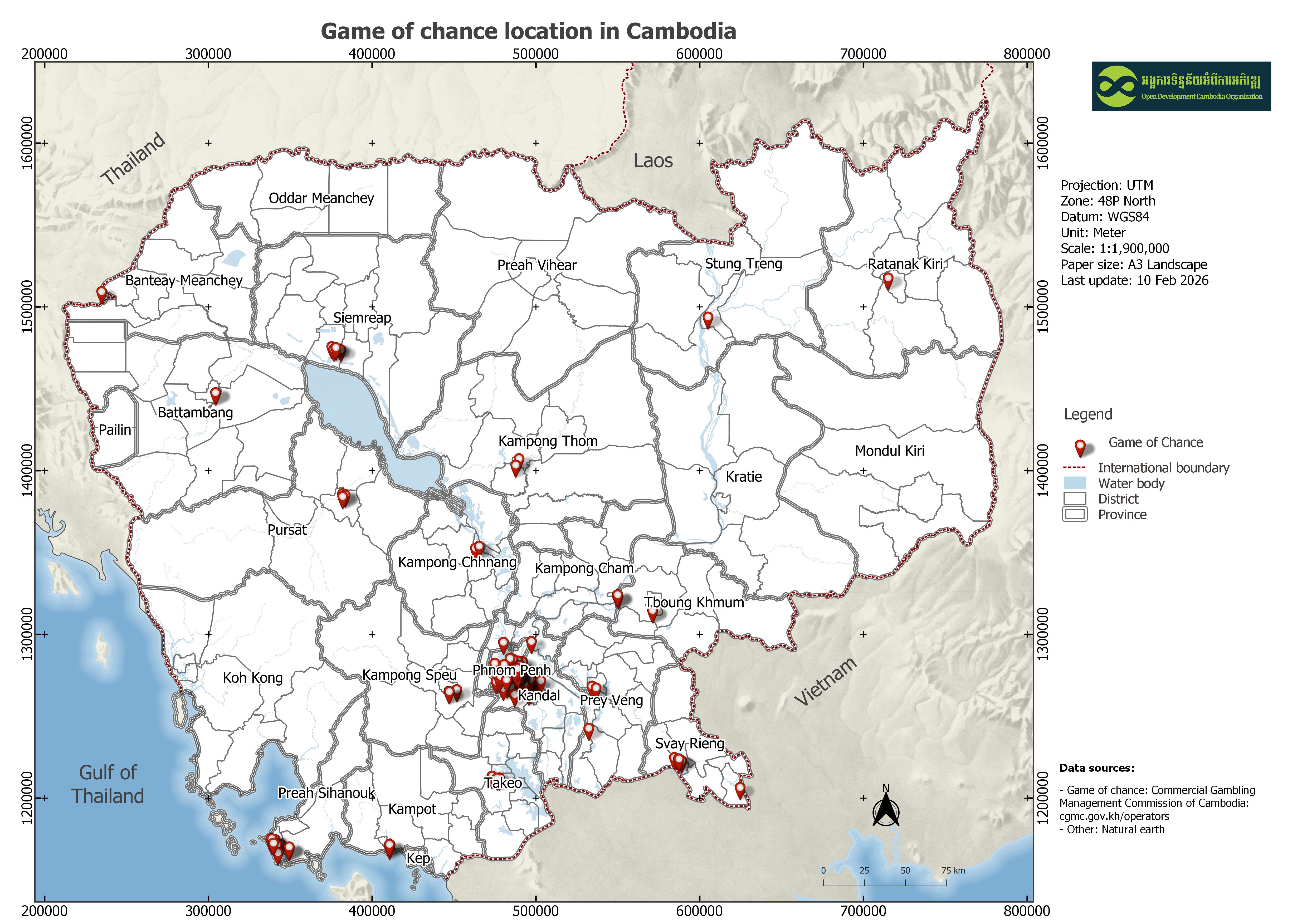 មើលធនធានទិន្នន័យ - ទីតាំងល្បែងផ្សងសំណាងនៅក្នុងព្រះរាជាណាចក្រកម្ពុជា